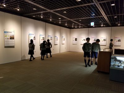 写真は、みんなで「姉妹都市コーナー」を見学しているところです。