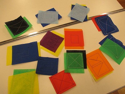 ひとり2枚作りました。2枚目はより複雑な模様に挑戦し、慎重にミシンを動かして仕上げることが出来ました。