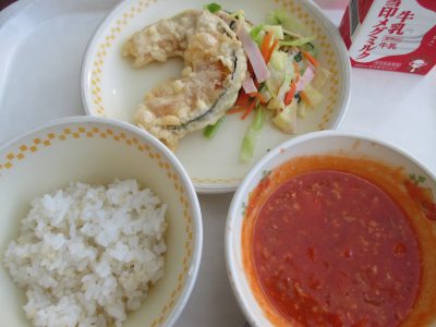 カラフルな水菜のサラダは、キャベツ、人参、ハム、水菜を合わせています。水菜はゆでるとかさが減って目立たなくなりますが、濃い緑色がアクセントになったきれいなサラダになりました。かぼちゃは火が通ると、さらに甘味が増しているように感じました。