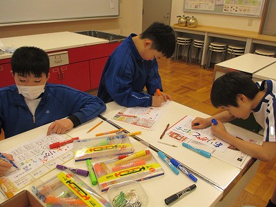 食生活委員会は、3月3日から始まる「ありがとう給食」に向けて、準備を始めています。今日は「ありがとう給食」のグループ表にイラストを描いて、カラフルに仕上げました。