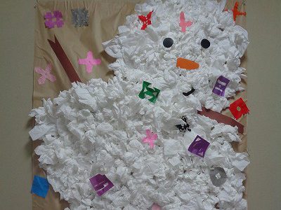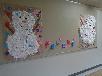 本校1階廊下には、かわいい雪だるまの掲示があります。