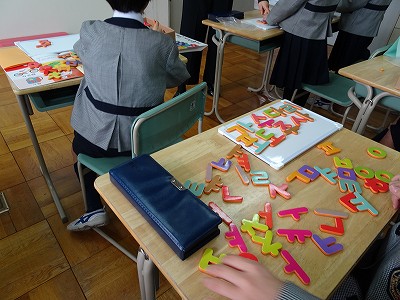 そして、なんと、今回からカラフルでマグネット付きの楽しい文字教具を使って学習しました!