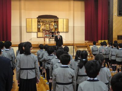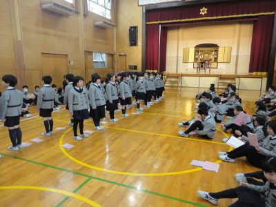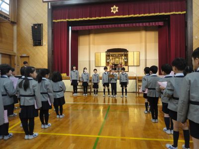 2/26水【礼拝・音読・児童会活動報告・給食】