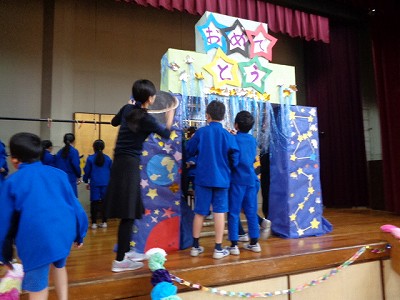 「ウンパッパでありがとう」歌とリズム、身ぶり手ぶりで、6年生にプレゼントしました。