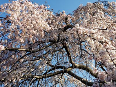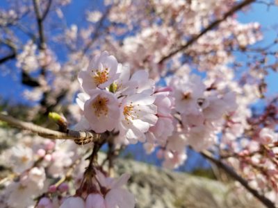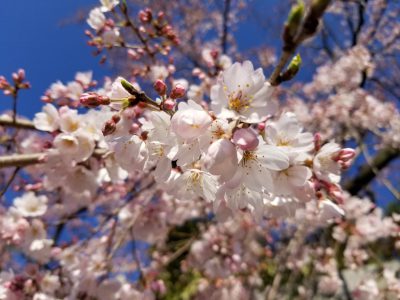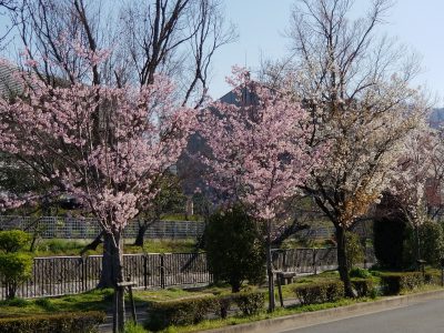 学校周辺の疏水にあるサクラの木々です。見ごろになってきました。