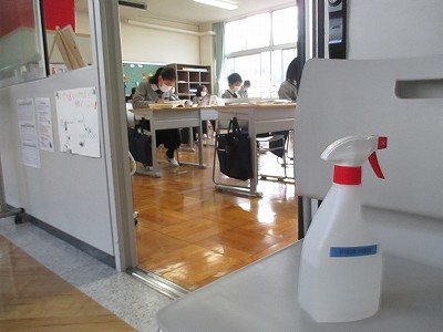 学校でも、換気の徹底や、マスクの着用、各学年に消毒用アルコールを配るなど、教職員全員で予防を心がけています。