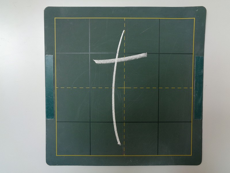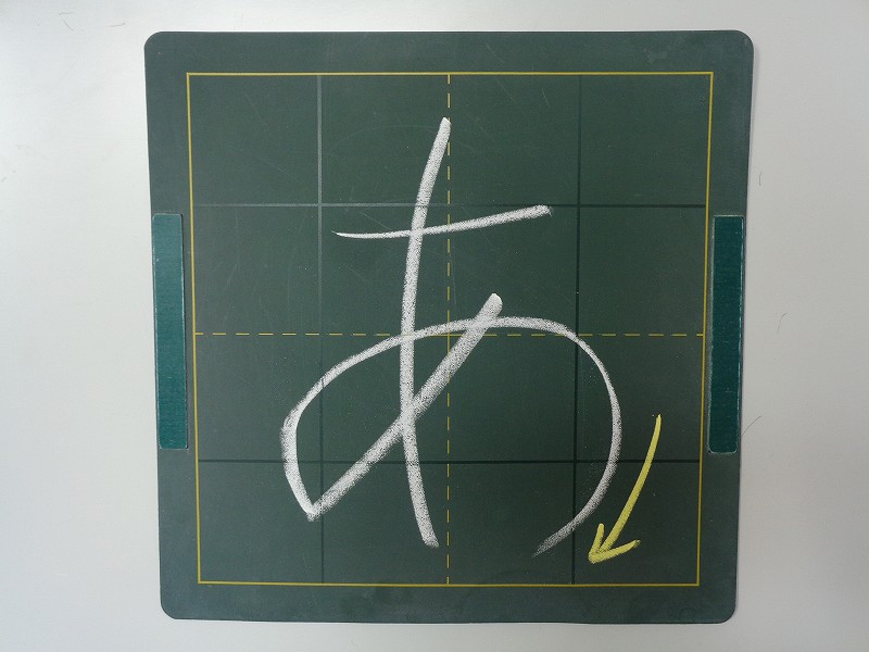 すこし みぎあがりで かきましょう。