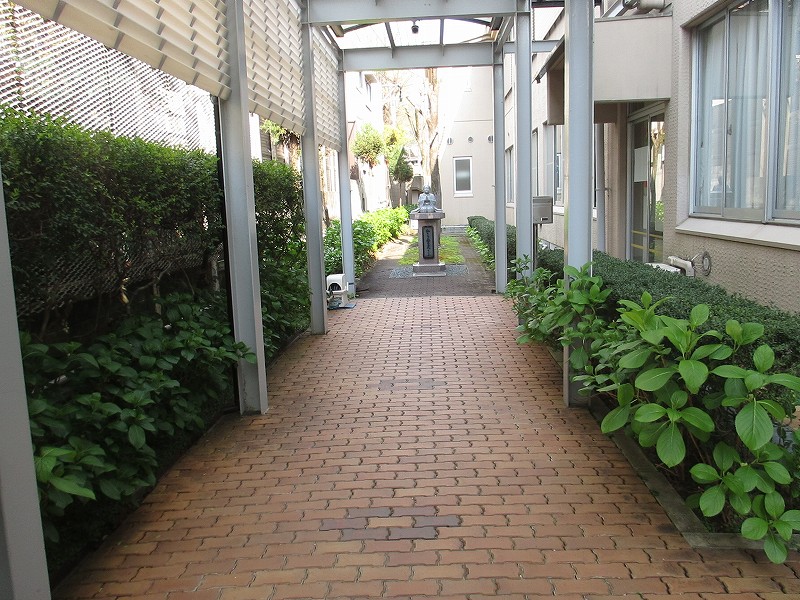 しょうがっこうの げんかんで、いつも「いちれい」をする ばしょの しゃしんです。
