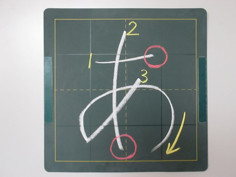 まっすぐではないので、プリントのおてほんを よくみましょう。
