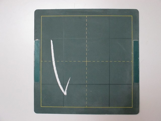 1かくめは、1のへやから 3のへやに むかって かき、さいごは はねます。