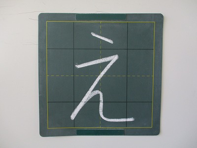 ななめしたに むかって、みじかく かきます。