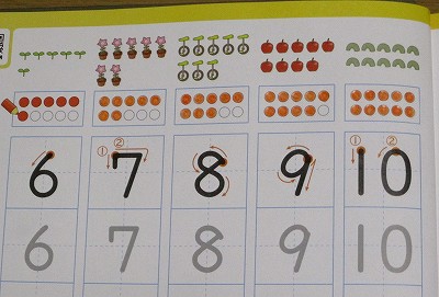 「6」「7」「8」「9」「10」の すうじの れんしゅうに すすみます。