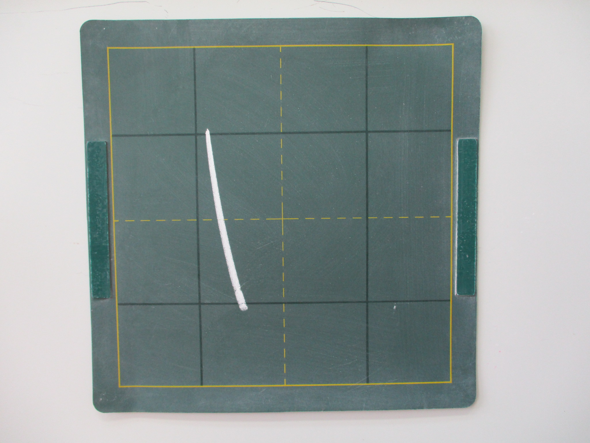 3かくめは、3のへやと 4のへやの あいだのせん(ちゅうしん)から スタートして、4のへやに ややさがりぎみで はいり、さいごは とめます。