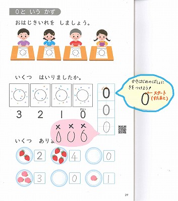 ③ きょうかしょの 29ページの「0」をなぞって、れんしゅうしましょう。