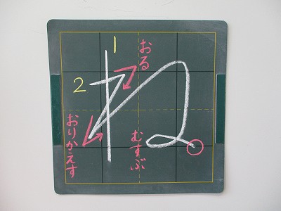 「おり」と「おりかえし」のところで、ぴたっと とめること(※えんぴつは、プリントから はなしません)をわすれずに、おてほんを みて、れんしゅう しましょう。