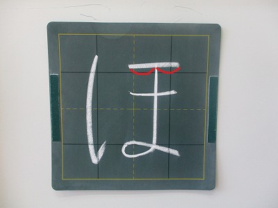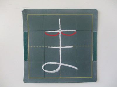 「ほ」の 4かくめとはちがい、「ま」の3かくめは、1かくめの うえから かきます。