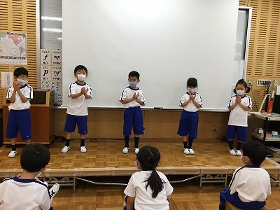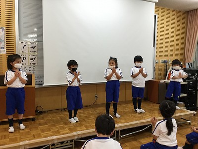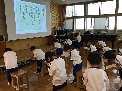 「できる~」「もう、見ないでも歌えます!」と、やる気満々の1年キッズです。