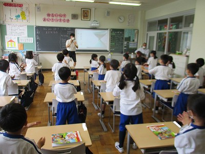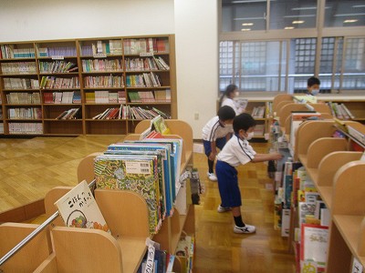 毎週火曜日の6校時は、読書の時間です。 教室で読み聞かせをした後、図書室へ行き、本の貸し出しをしました。