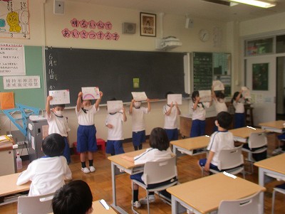 学校探検を通して、少しずつ小学校のことを覚えています。 次の時間は「先生たちのお仕事」について学習します。