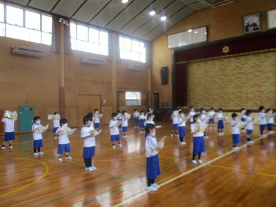 体育館で音読をしました。 練習する度に、みんなの声をどんどんそろうようになってきました。