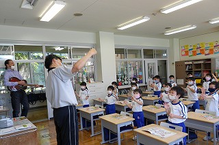 マスクはしていますが、ポール先生の目の見開き方をたよりに、英語の音の強さチェックです。