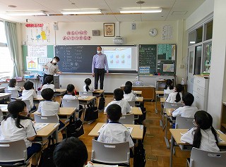 前回に引き続き「先生たちのお仕事」について調べています。今日は、事務の先生と用務の先生にお話を聞きに行きました。