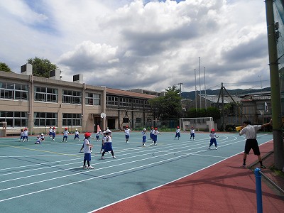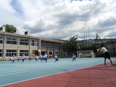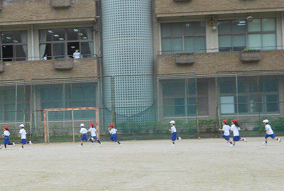 体操をした後は、中学・高校のグラウンドに向かいます。