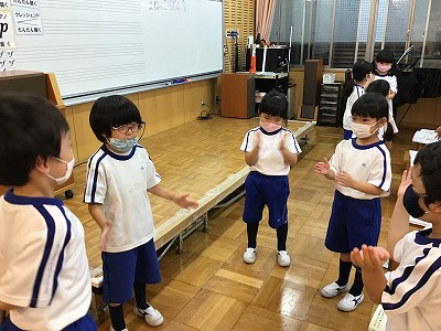 【音楽「チームでリズムまねっこ」】
