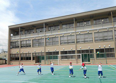 激しい雨がやみ、3校時の体育の時間には晴れ間が広がりました。