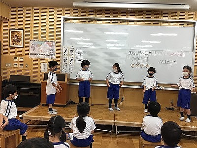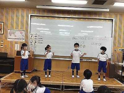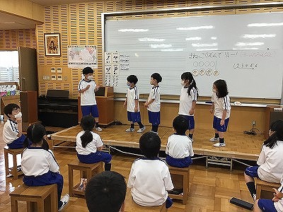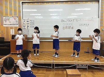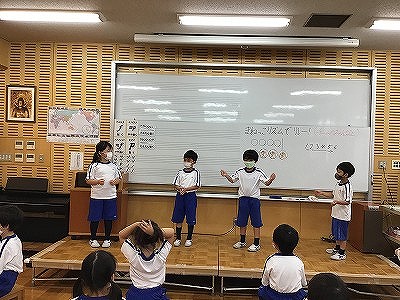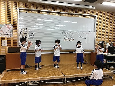 きょうは、まねっこリズムをリレーのように発表する時間です。