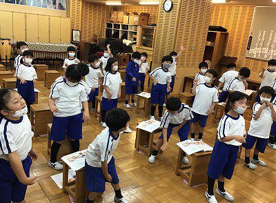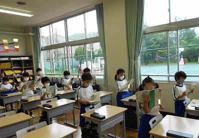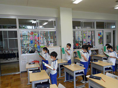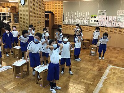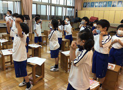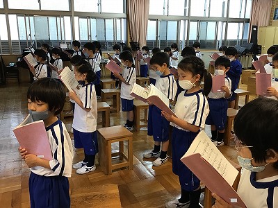 最後の「我が文教小、文教小学校!」のところは、気持ちよく歌おうと、真剣です。