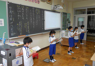 次の時間は、おじいさんやねずみたちの動作も加え、音読の工夫について考える学習を行います。