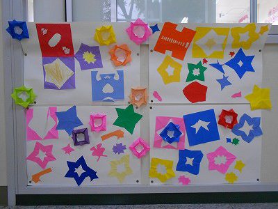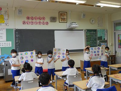 先々週より、かざり係のメンバー6人でお花や星などのかざりを楽しく作り、画用紙にまとめてくれました。