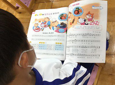 今日から、「♪わくわくキッチン」という、題名からして“楽しい歌”を学習します。