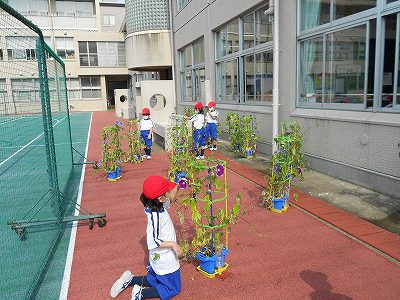 今週の家庭学習の計画を立てました。並行して、順番に運動場に出て、アサガオの観察もしています。