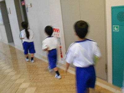 静かに廊下の右側を歩くことに加えて、前の人と間をあけることも意識して歩いています。