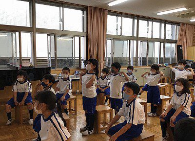 「♪ドレミのキャンディ」は、「ドシラソファミレド」と、高いドから下りていくので、「むっずかしい!」と1年生。次の時間も、チャレンジしましょうね。