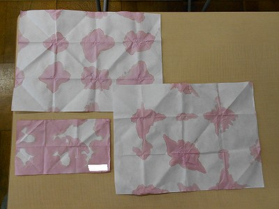 色水の模様を見ながら、どの部分を切り取ろうか考えて、形を決めています。