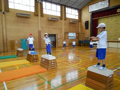 今日も体育は、忍者でジャンプです。