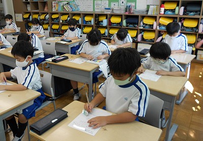 朝根っこタイムの学習や、宿題の音読の成果を発揮しながら、心地よい声で読んでいます。
