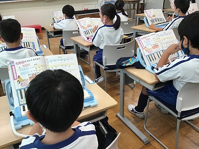 鍵ハモ学習は「ド・レ・ミ」の指使いに進みました。教科書には「あ・の・ね」という言葉で表現してくれています。「あのね…」とお話するように、やさしい息づかいで音と指の動きが重なるように助言しています。