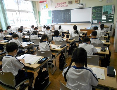 1校時に、地震を想定した避難訓練を実施しました。昨日の事前学習を思い出しながら、放送や担任の指示を静かに聞いて、落ち着いて運動場に避難することができました。