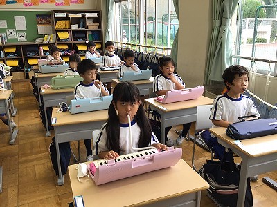 “一列に5人ずつ”座っているので、最後にドレミのバトンをもらった人は、「○○ド・」を演奏してもらうことを約束しました。
