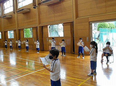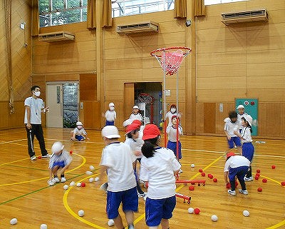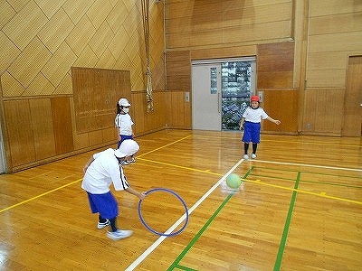 前半は、ミニ運動会の並び方を確認し、その後、玉入れの練習しました。