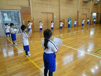 体育館で音読をしました。