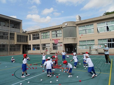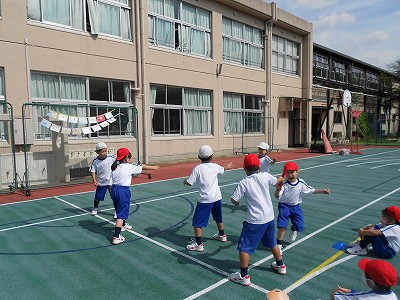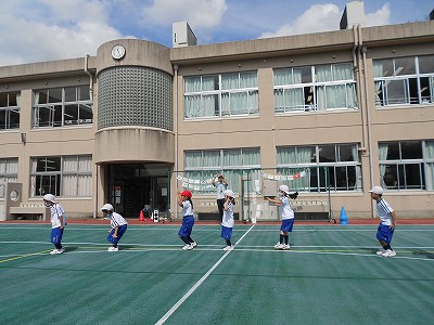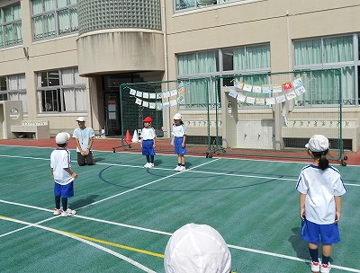 秋晴れの下、延期していた「1年生ミニ運動会」を実施することができました。