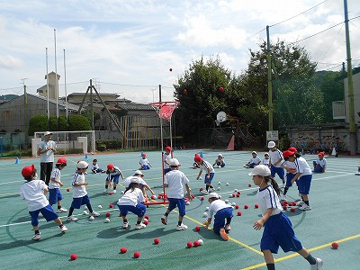 運動会のプログラムの中で、大人気の「玉入れ」です。