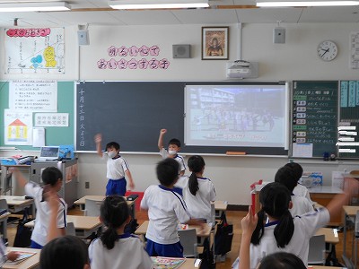 今日も音楽に合わせて、歌ったり、踊ったりしながら楽しく学習しました。