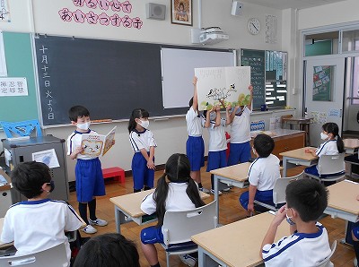 中間休みの前半に、ブックワールド係さんが読み聞かせをしてくれました。