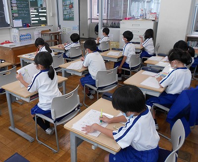 お手伝い新聞の下書きに取り組んでいます。今日は、継続して取り組んだお手伝いについて、難しかったところや工夫したところ、お家の方からいただいたアドバイスを書きました。